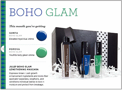 To the Boho Glam box since I want to try the mascara, and really want Popova!! Blue is my very favorite color so I am not sad to be getting two Guntas this month, and I had to have the mascara! I have never tried brown so I hope it will look good with my green eyes, brown hair, and dark eyelashes??